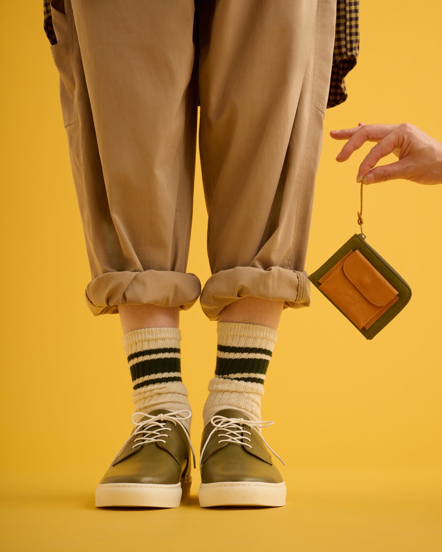 シンプルなお散歩スタイルにはインパクトのあるレザーアイテムを シンプルな装いの日こそ、レザーアイテムで遊び心をプラス。ターコイズブルーの存在感のあるバッグやダルメシアン柄のショルダーバッグやカラフル小物が、さりげなくコーデを格上げしてくれます。いつものお散歩も、ちょっと特別に感じられるスタイルです。 使用アイテム Sold Out RENトートバッグ Turquoise €116,95 Sold Out Liberatoローファ― Black €280,95 artigiano長財布 Dalmatian €120,95 kissoraミニ財布 €168,95 TOSSスニーカー khaki €216,95 numeri Sottile Mini Bi-Color / Green x Yellow €148,95 sugata Long Wallet / Layers / Black €144,95 使用ブランド トレンドに左右されないデザインとシンプルさ REN イタリア語で職人という名前のブランド名 artigiano 日々使用する中で楽しかったり気分が良くなる、そんな革製品を提案 DELIFE 日常にそっと寄り添う「kissora」との生活 kissora 革靴とスニーカーの要素を合わせ持ったハイブリッドシューズブランド TOSS ハンドメイドにこだわり、1つ1つ職人の手作業 numeri 「普通を作る工夫の重なり」をコンセプトに sugata LOCALアイテムコレクション