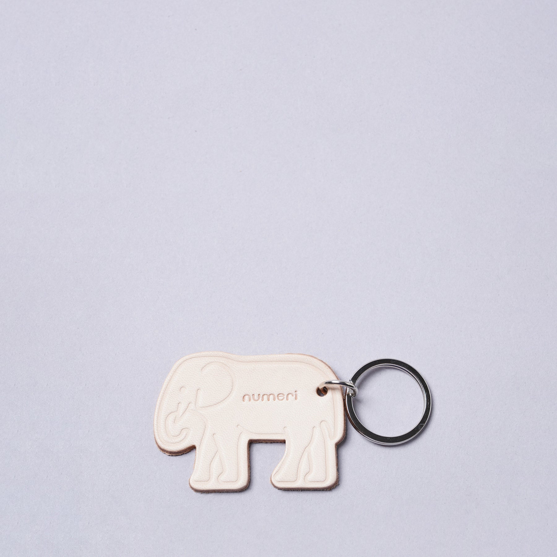 Key ring shaped like an elephant. The ring diameter is 2.5 cm, a perfect size for house and car keys. It is stamped with the ‘numeri’ logo.