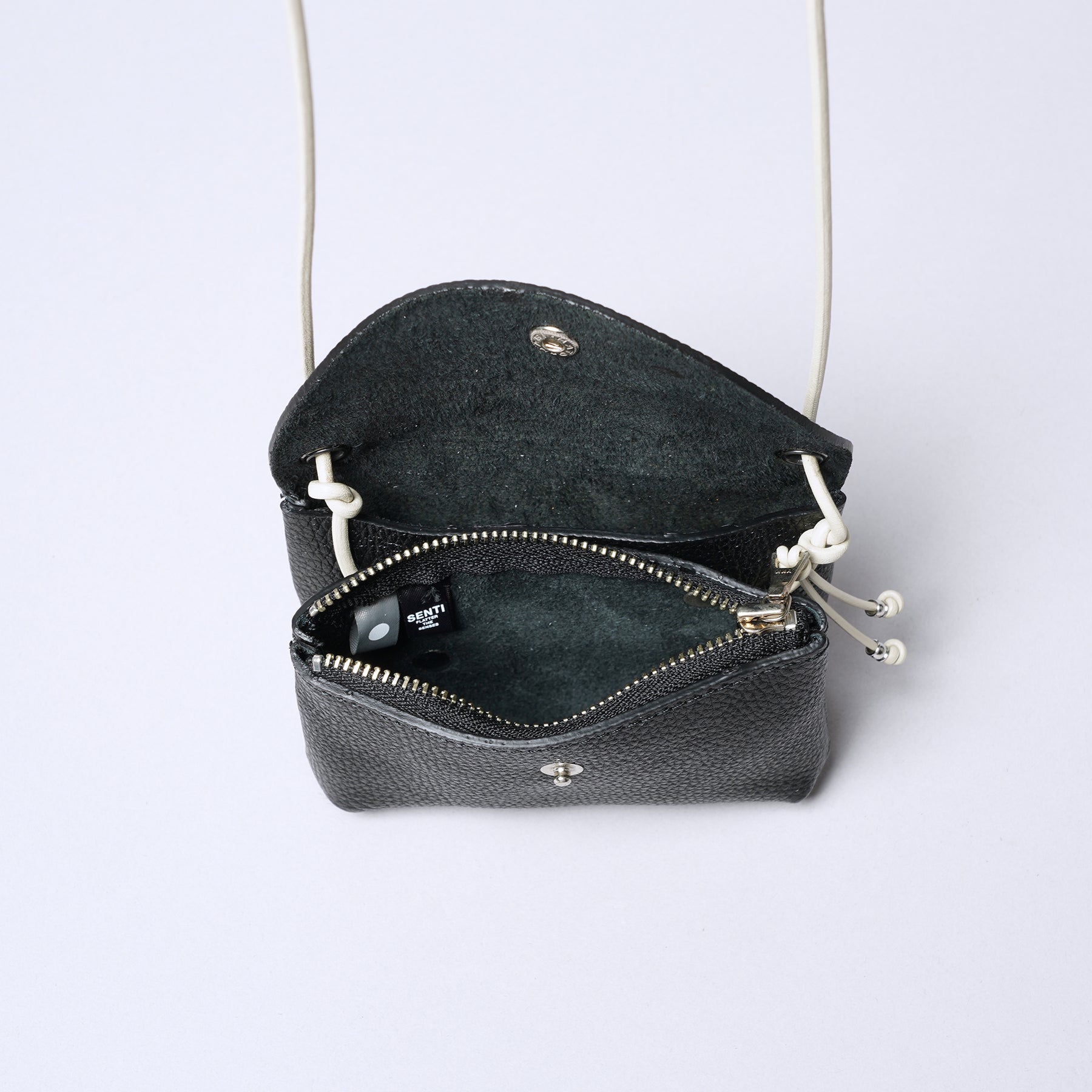 <センティ フラター ザ センシーズ>シュリンクレザーネックウォレット/ブラック×アイボリー
