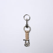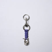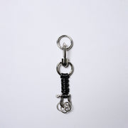 レザーコードの編み込みとフックカラビナ、ネジ式Dカンを組み合わせたキーホルダー