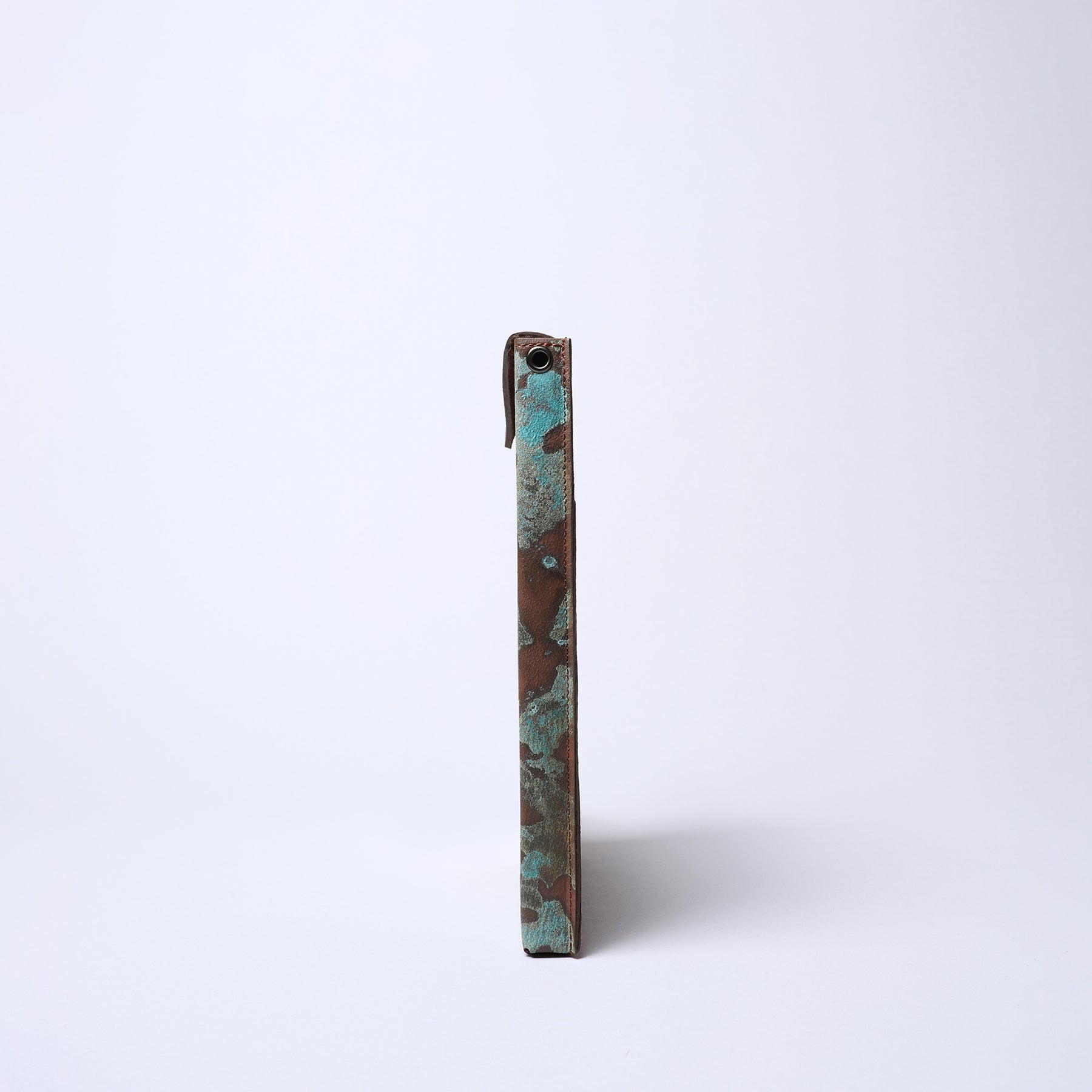 真鍮、赤銅などを吹き付け、錆を呼び起こした本革