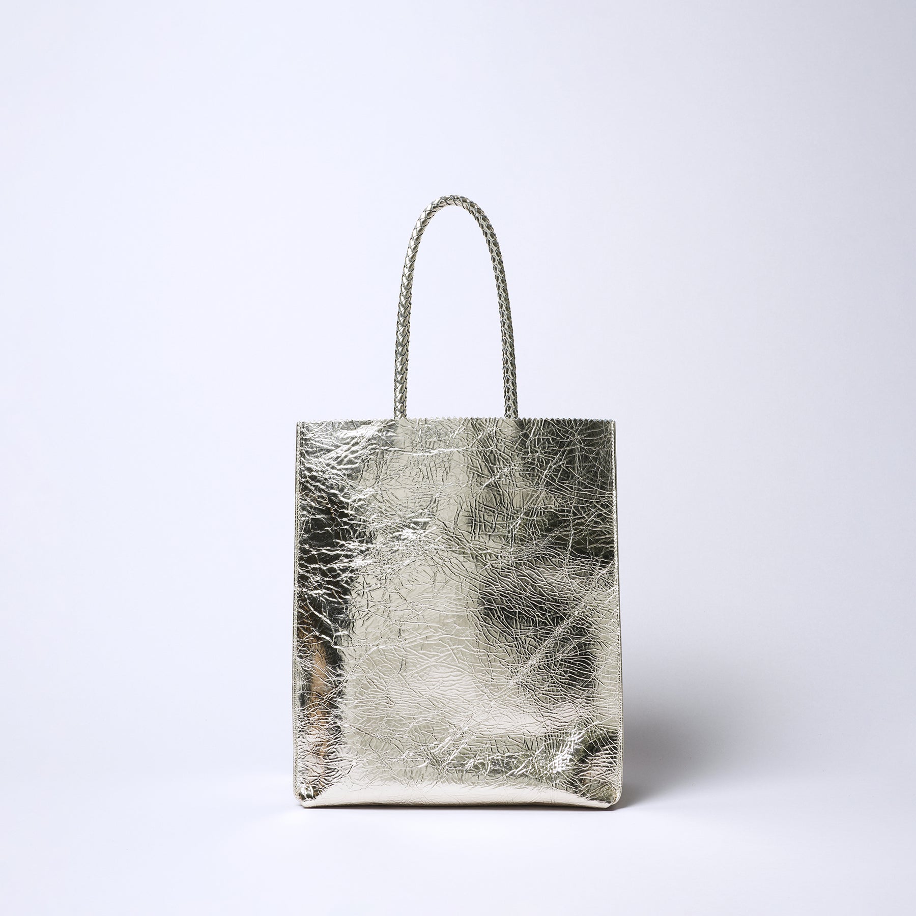 牛革に箔を貼ったイタリア製の革。箔がランダムに貼られているので傷が目立ちにくく、ユニークな表情が特徴です。