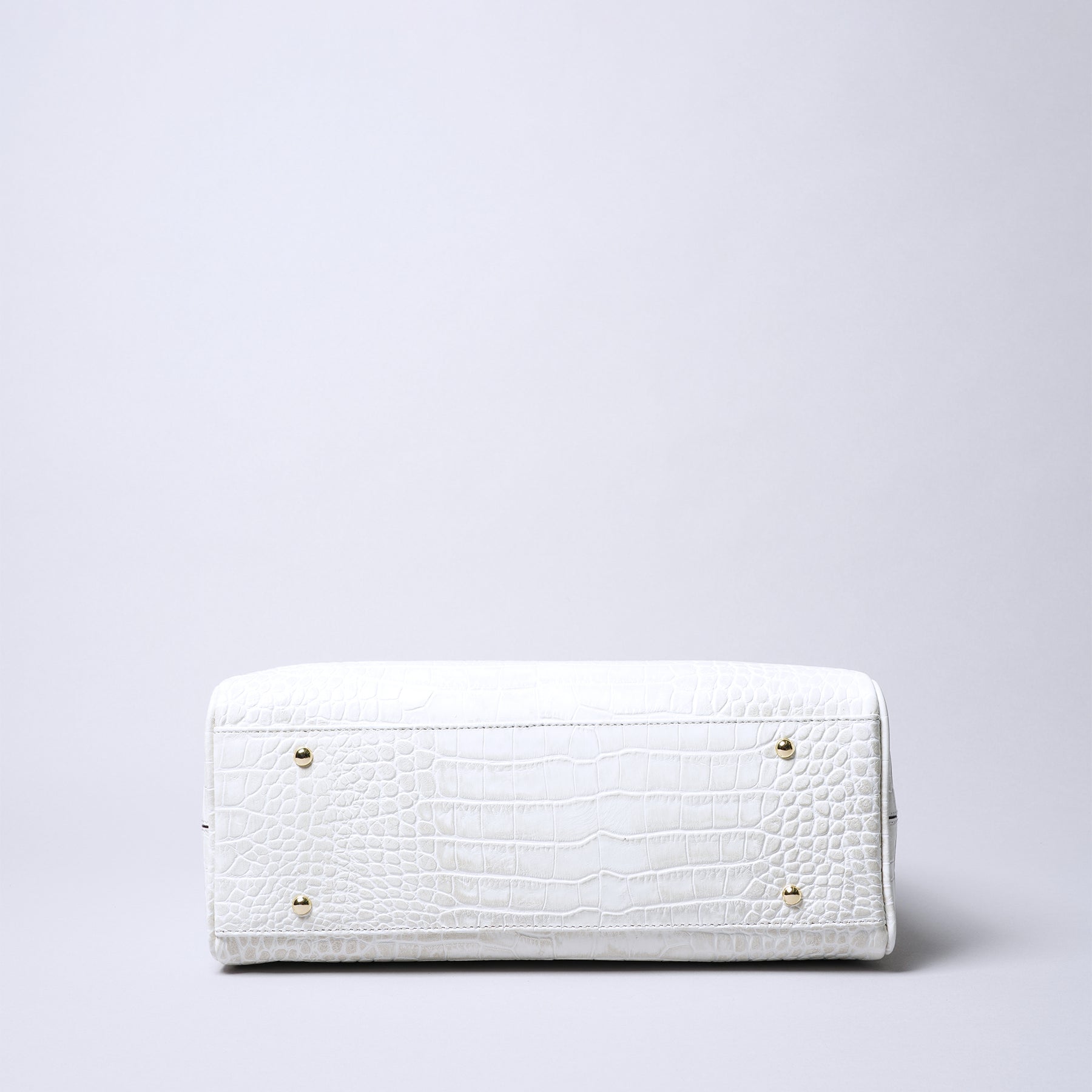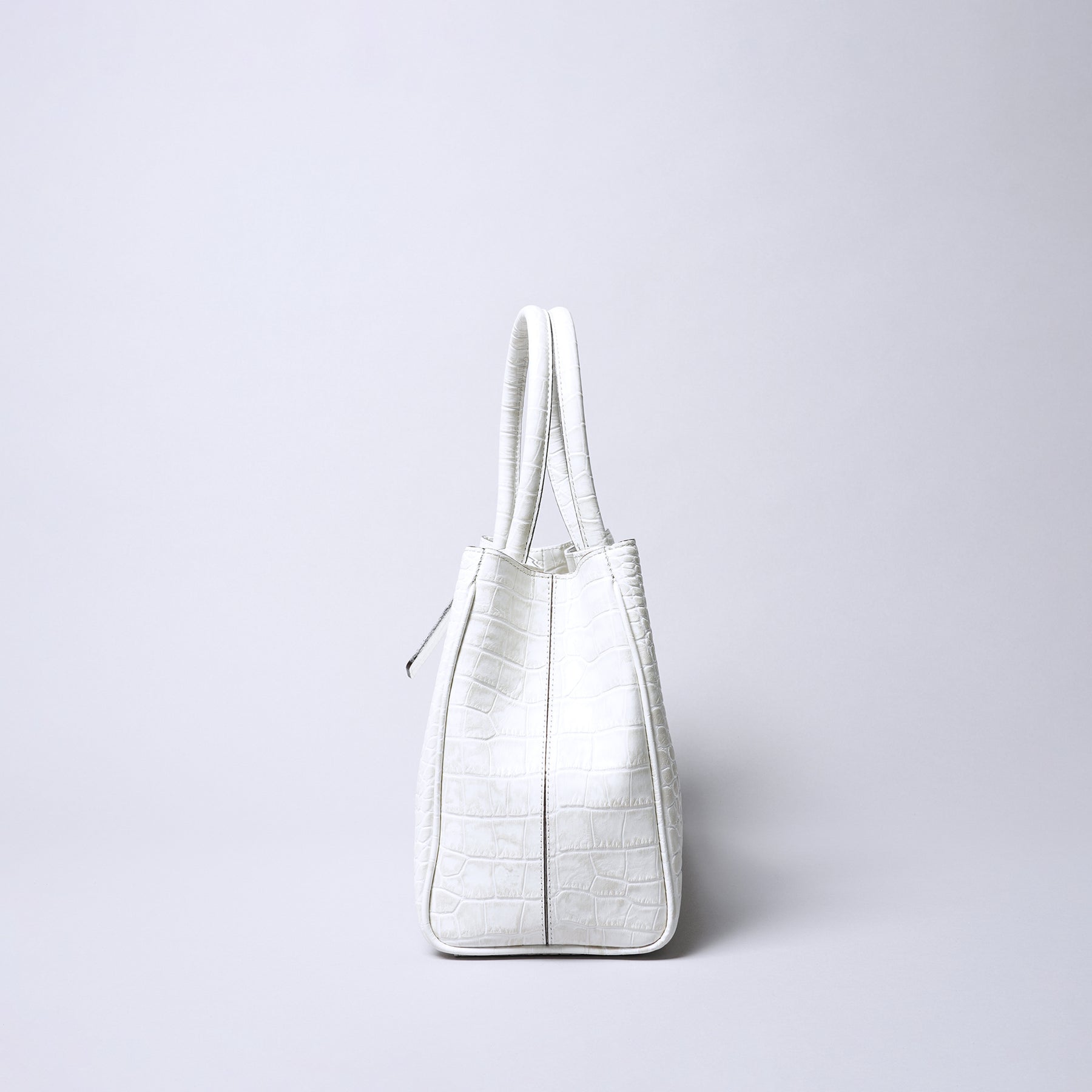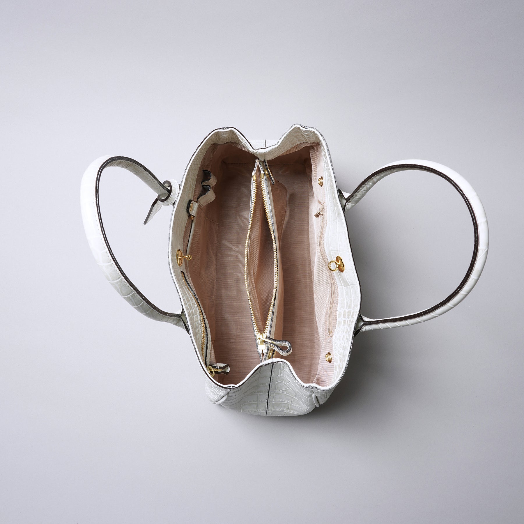 ビジネスシーンからデイリーシーンまで幅広く活躍するシリーズです。上品なクロコの型押し牛革を使い、中央の仕切り状についたポケットはホックで取り外しが可能で、背側に付け替えることも可能です。カード入れやペン差しなどのポケット類も充実しマザーバッグのような収納のしやすさを追求しています。