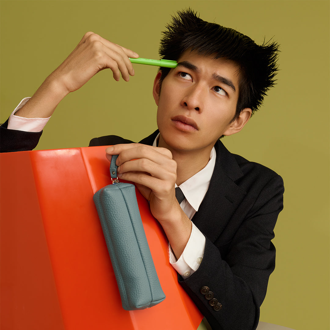 <LEZALI> Embossed Leather Pen Case L / Sky