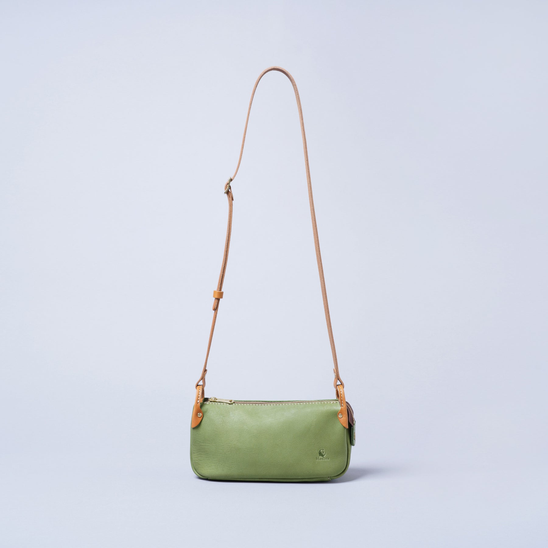 Oil leather from Himeji is used. The leather contains plenty of oil and has feels good to the touch and you can fully enjoy the changes over time. The smooth texture of the surface of the leather is also key, that gives it a very leather-like feel. For the shoulder and other accessories, a luxurious piece of thick tanned leather is used.