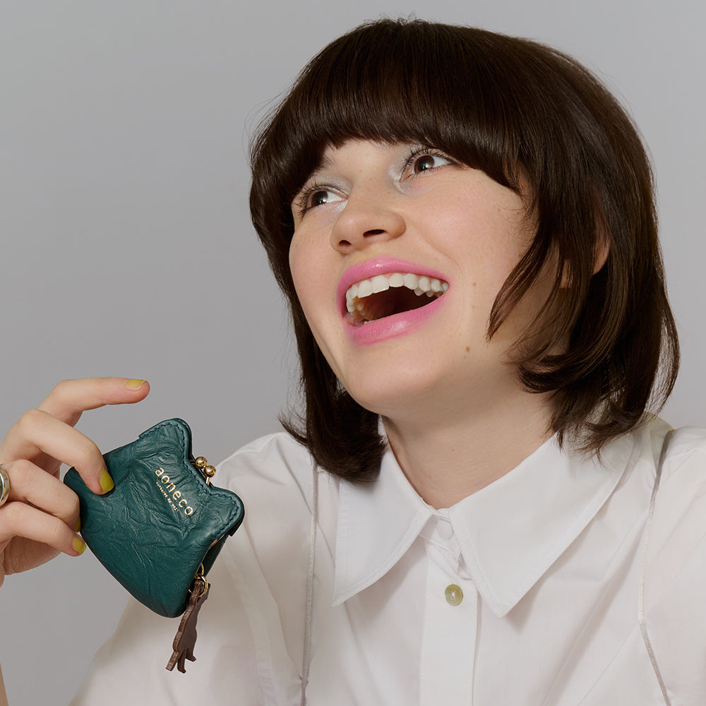 This brand incorporates a highly transparent system in which a ticket for donating to rescue cats is included and the purchaser can directly donate the money by following the instructions. *Currently, donations will be made to cat shelters in Japan. The leather, which is soft and snug in the hand, is made from 100% meat by-products only, which makes it an eco-friendly leather. This is an original leather developed exclusively for aoneco by waji in collaboration with a leather manufacturer that is favored by high-end brands. A micro cat pouch that can fit not only coins, but also jewelry, hair accessories, medicine, and other small items. aoneco offers more value than its price (made by a designer and craftsman from a long-established luxury brand using high quality materials) and a charity with unlimited transparency (by purchasing the product, you are directly connecting with support for cats). We do not make products that look cheap, as is often the case with charity products, but rather, we make products with pride and love for cats, and we are very particular about our products