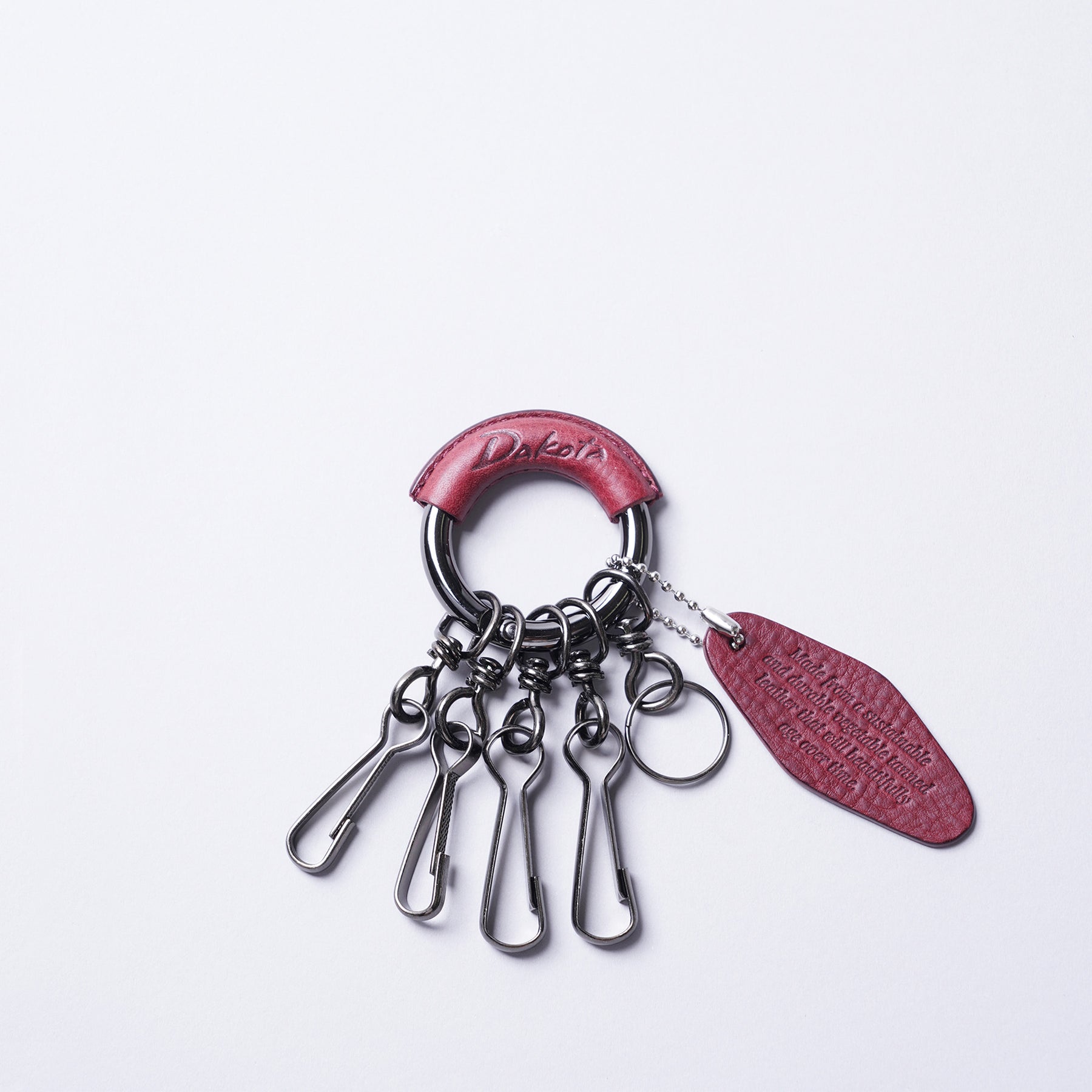 A series of key holders with Italian cowhide leather attachment. Vividly colored Italian leather is carefully sewn by craftsmen and matched with voluminous metal fittings. Key holders that give a stiff impression are embellished with Italian leather, allowing you to carry your keys in style. This key holder uses a chic black nickel swivel hook. The ring closure can be hidden by a leather cover, and the 0.5 cm thick round ring is strong and sturdy. It comes with four large and four small key rings of different widths, so you can attach them according to the size of your keys.