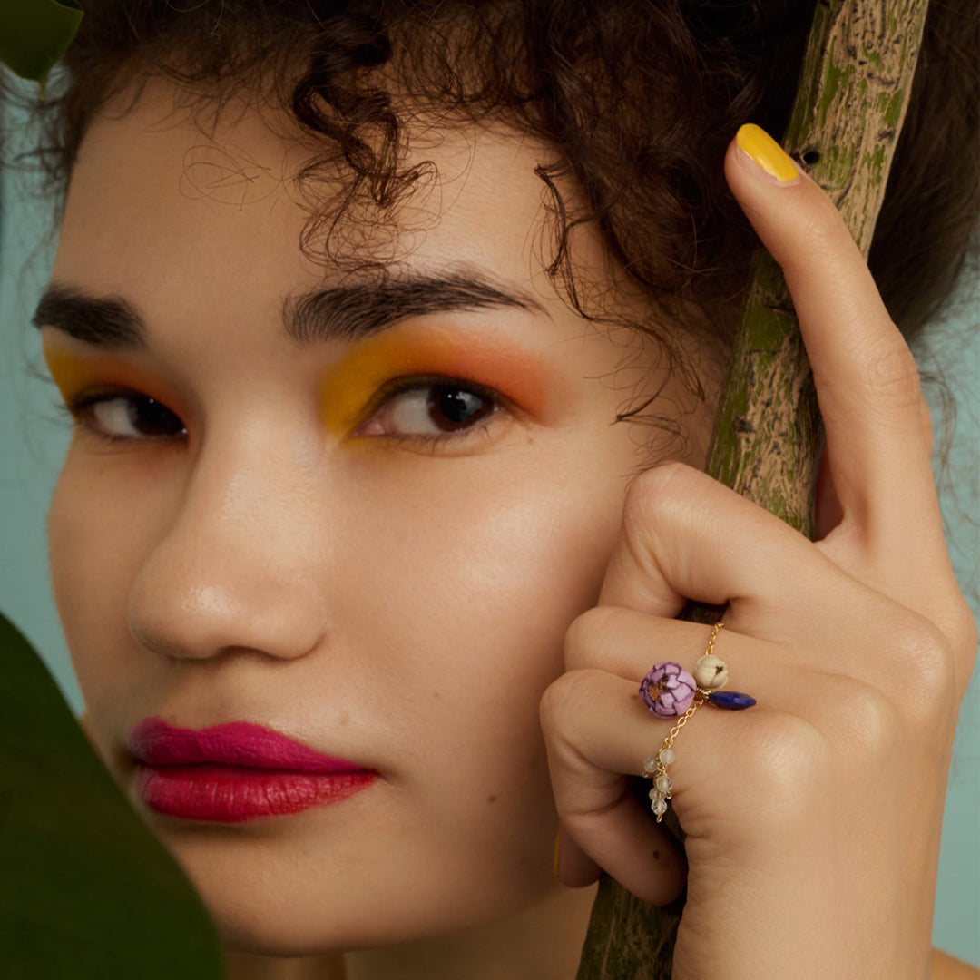 <Selieu> Chain RIng Stone 5 / Purple & Beige