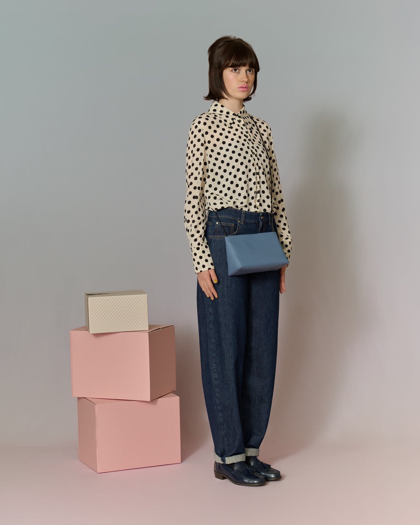 コーヒーと本を片手にゆるり休日さんぽ。 ドットシャツにデニムを合わせた、どこか懐かしいクラシックな装い。そこに、すっと差し込むブルーのショルダーが、軽やかな都会感を添えてくれます。近所のカフェや本屋さん、気ままな休日のお供にぴったりなミニマルバッグです。 使用アイテム FABRIK<FABRIK>UNIT / MINI SHOULDER BAG/芥末黃 €129,95 賣光了 CORGAショルダーバッグ 藍色的 €96,95 賣光了 HARUTAローファー 藍色的 €103,95 野村製作所ポーチ Ume €50,95 賣光了 1/2HALFキーケース 粉紅色 €28,95 賣光了 KIYOKAWAポーチ 駱駝色 €36,95 使用ブランド 多彩なカラーバリエーションの FABRIK FABRIK とことんシンプルを追求したデザイン CORGA ローファーといえばHARUTA!日本が誇る老舗靴メーカー HARUTA 大正12年より、革小物を作り続けている野村製作所。 野村製作所 半分半分の合わせて100パーセント。 1/2HALF 使う人を考えられたシンプルなデザインのバッグメーカー KIYOKAWA WEEKENDアイテムコレクション