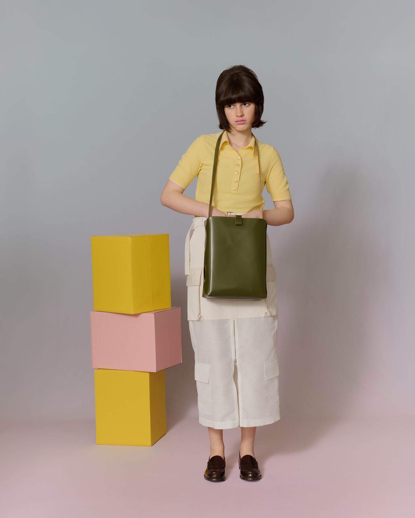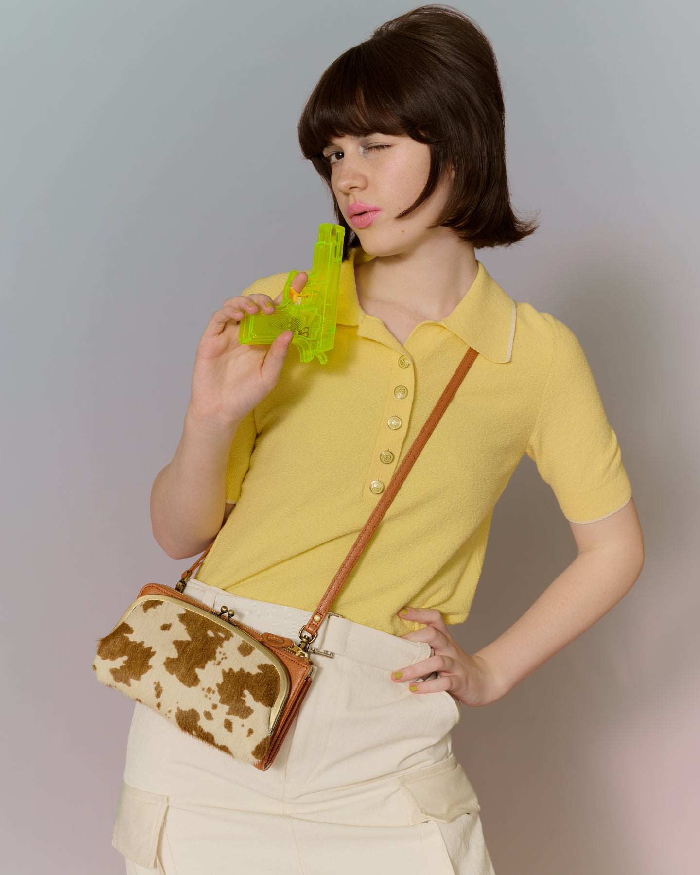 今日はちょっぴりスパイ気分 ヴィンテージライクな襟付きトップスに、ミルキーなスカート。そこにホルスタイン柄のがま口バッグを合わせて、視線をキャッチする遊び心をひとさじ。小さめサイズながら、財布やスマホも入る実力派。休日の気ままなお出かけも、このバッグがあれば主役気分で楽しめます。 使用アイテム artigiano長夾 乳牛色×駱駝色 €153,95 kiichi長財布 藍色的 €129,95 野村製作所<野村製作所>達摩零錢包(2025年限定色)/薰衣草紫 €54,95 HARUTAローファー 棕色 €66,95 賣光了 FABRIK<FABRIK>BOCHS/A4 MULTI TOTE/苔蘚綠 €290,95 使用ブランド イタリア語で職人という名前のブランド名 artigiano どこか懐かしい、ずっと愛せるデザイン kiichi 大正12年より、革小物を作り続けている野村製作所。 野村製作所 ローファーといえばHARUTA!日本が誇る老舗靴メーカー HARUTA 多彩なカラーバリエーションの FABRIK FABRIK WEEKENDアイテムコレクション