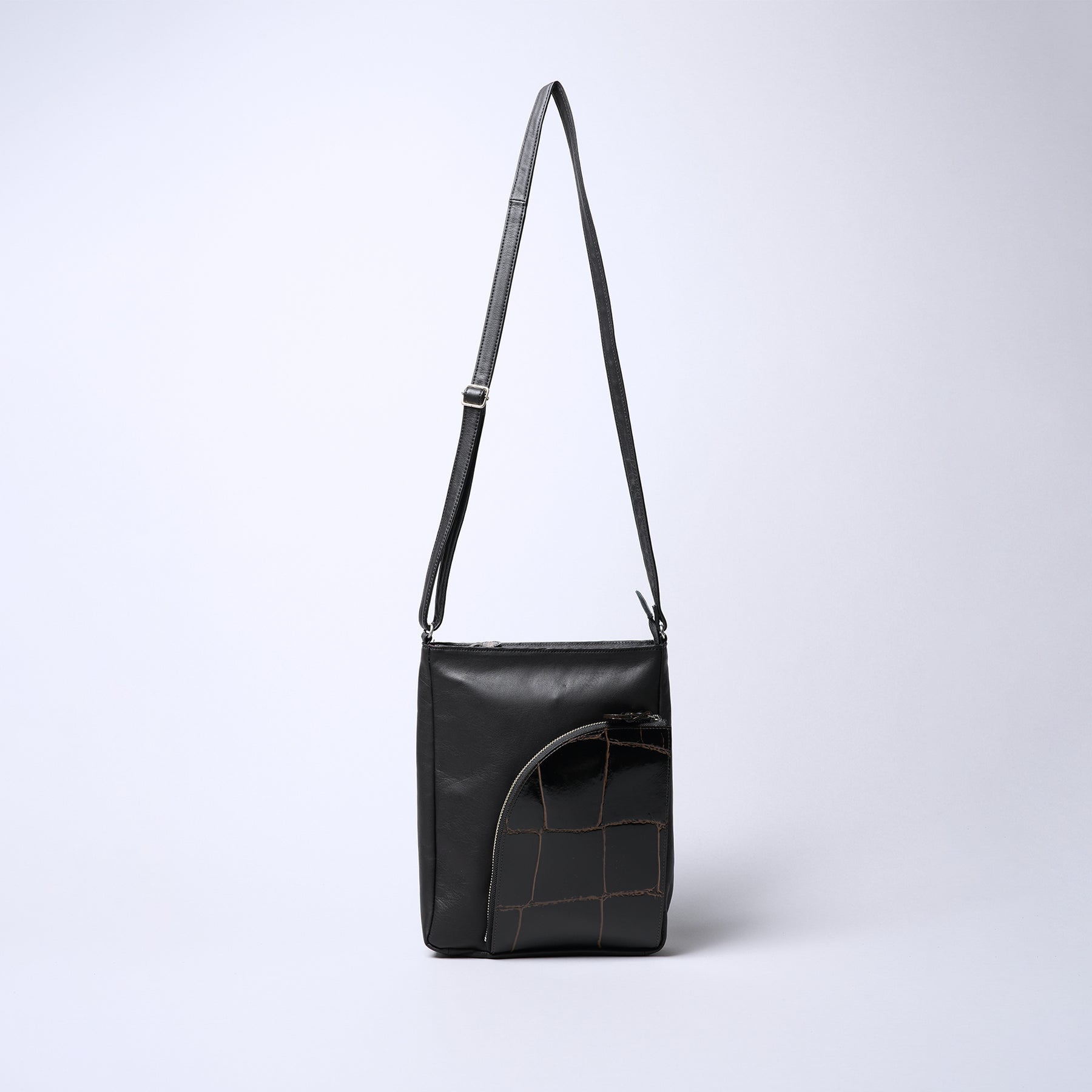 Apollon特色系列包款,採用優質素面塗油皮革製作並於包包前方飾以大型鱷魚壓紋口袋。口袋尺寸可收納長夾,恰到好處的包身尺寸設定,容量充足,非常適合於日常生活中使用。