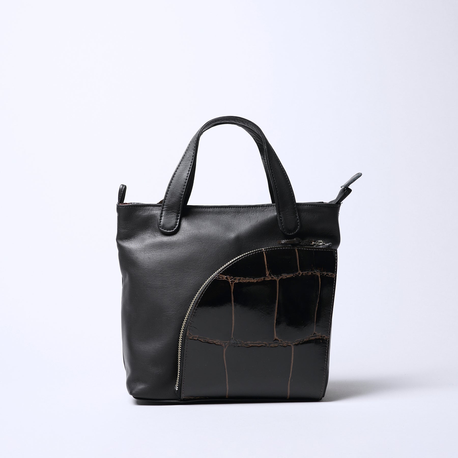 Apollon特色系列包款,採用優質素面塗油皮革製作並於包包前方飾以大型鱷魚壓紋口袋。可拆式肩背帶設計,可依使用需求變化為手提包或斜背包等兩種不同背法。
