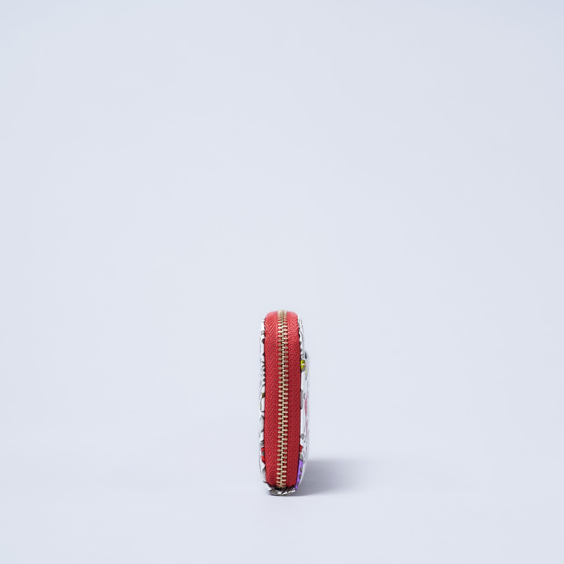 ファスナー部分の赤色と内装の仕切りの赤色がアクセントとなって、小物ながらも魅力がたくさん詰まったアイテムです。4段のカードポケットと2箇所の仕切りを上手に使うことで、一般的なコインケース以上に自分らしく使いやすい、マルチケースに様変わりします。