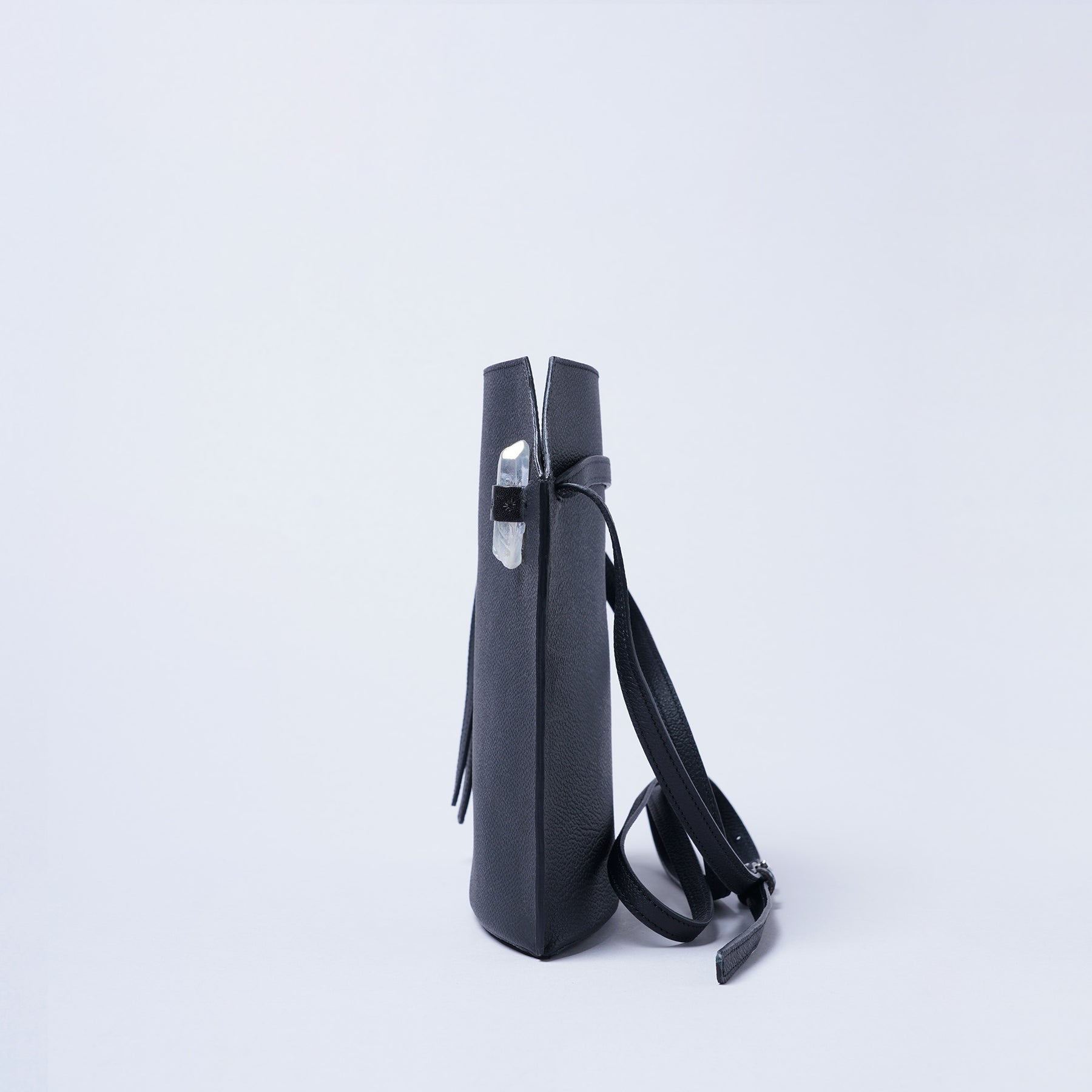 加寛的底部設計,並在包身大膽以皮革飾帶及天然水晶(Aquaaura)點綴,多個細節的精緻裝飾,背起包包時猶如佩戴飾品在身上般。