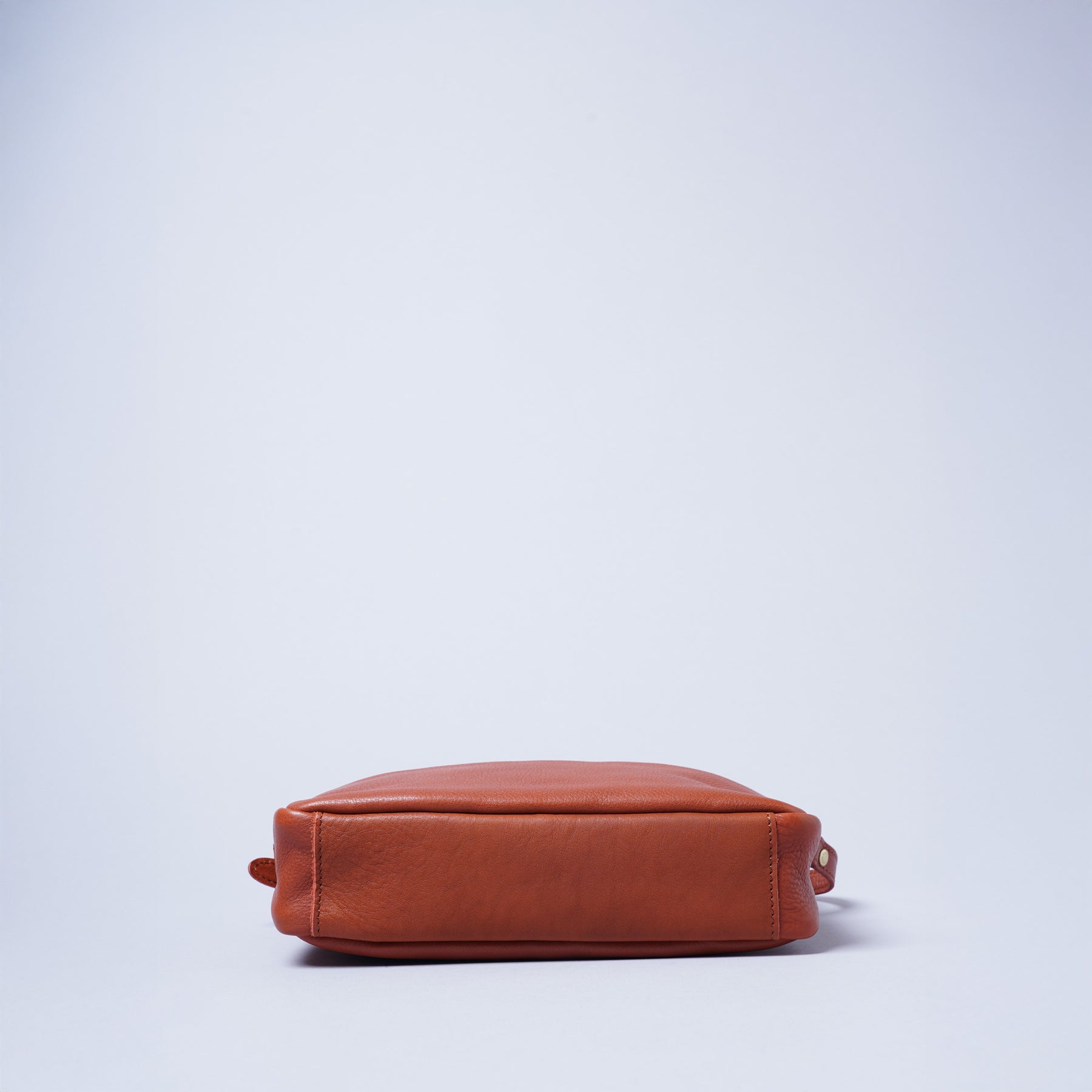 這款迷你斜肩包採用於日本姫路生產的植鞣牛皮製作而成,皮革在製作過程中加入產於義大利的橄欖油,賦予柔潤觸感,並在加脂與摔紋的工序,使皮革更加柔軟並呈現出天然的細緻紋理。由於植鞣製法如同為皮革畫上淡妝,每塊皮革的紋理表現將有所不同,正因如此,可以更加感受到皮革原有的自然風貌。也因皮革未進行過多加工處理,隨著時間經過表面會產生獨特的色澤變化。