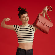 這款斜背包使用表面富有細緻紋理的牛皮製作,搭配較粗的0號縫線,並飾以包覆式按扣,是品牌旗下長年熱銷的商品系列。內裏選用的圓點圖案材質也是商品的特色之一。還可享受皮革隨著使用時間經過產生的質感變化,越使用將越柔軟,呈現出豐富多彩的魅力。