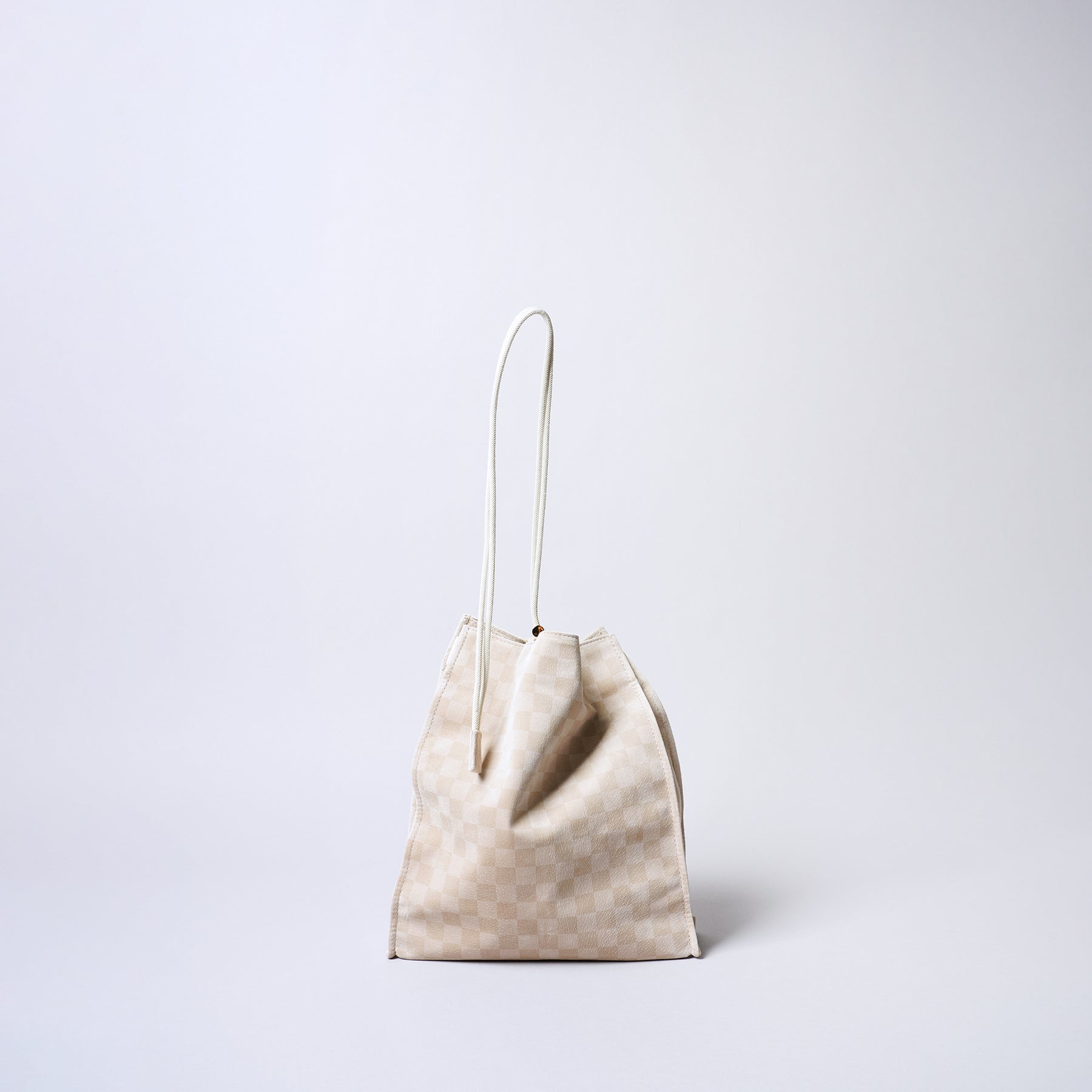 透過調整繩子的拉法與長度,可將包包變換成手提托特包、肩背托特包與束口斜背包等三種不同造型。還可將包包整體捲起並用繩子固定,像卷軸般輕巧收納攜帶。