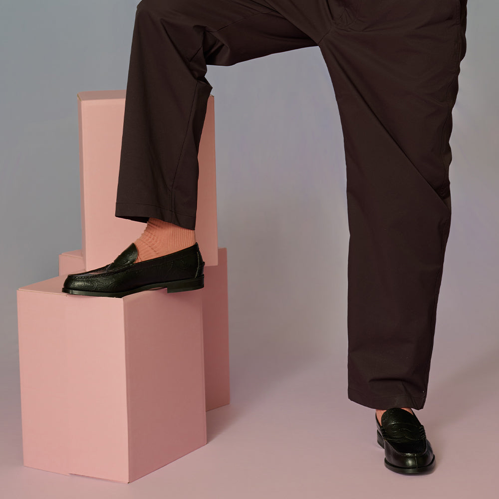 此款鞋以樂福鞋為基底,為提升穿著舒適度而升級各項技術規格。鞋面採用全新開發的日本國產柔軟皮革,讓顧客穿上腳便能瞬間感受到柔軟性,中底則搭配高彈性海綿材質,提供更好的緩衝效果。