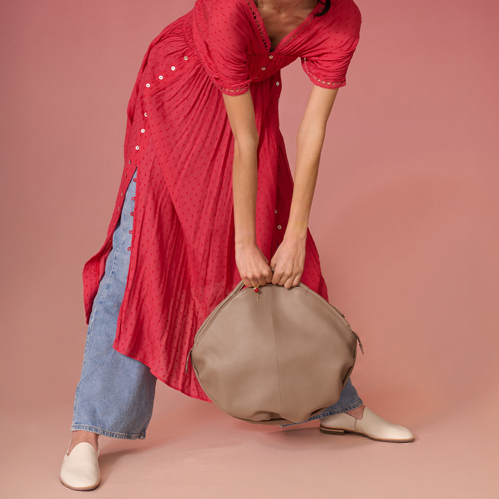 🇯🇵有著「包款輪廓令人印象深刻」的時尚設計系列。此款包包使用柔軟牛皮製成,以其圓形可愛外形令人愛不釋手,設計為可肩背也可手提的兩用包。包包大小可對應至收納A4尺寸物品,因此適合在各種場合使用。可拆卸式的肩背帶刻意設計幅寬較寬,背用時可減輕肩膀負擔。肩背帶長度可調整為半肩背或斜背使用。ESTINE品牌以「時尚」、「藝術」、「當代」為關鍵字,自許超越框架,為追求自我表現的人傳達有智慧的現代都市時髦風格。